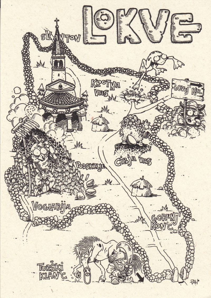 edinska imena (imena polj, travnikov, gozdov, dolin, delov vasi ...) le redko najdejo prostor na zemljevidih, živijo pa s prebivalci vasi in odslikavajo njihov način življenja ter miselnost. Imena, s katerimi so se domačini orientirali v svojem najbližjem prostoru in so ga zato poimenovali, se v zadnjem času izgubljajo tudi na Lokvah. Da jih ne bi vzel čas, smo jih hudomušno spremenili v ilustracijo in jih z razglednico pošiljamo v širni svet. Razglednico je ilustriral Anton Špacapan Vončina, oblikoval pa Matjaž Komel, idejno zasnovo je prispevala Petra Kolenc. Razglednica je na voljo v TIC Nova Gorica ter na Lokvah v prostorih društva LO-KO in pri Društvu Planota.