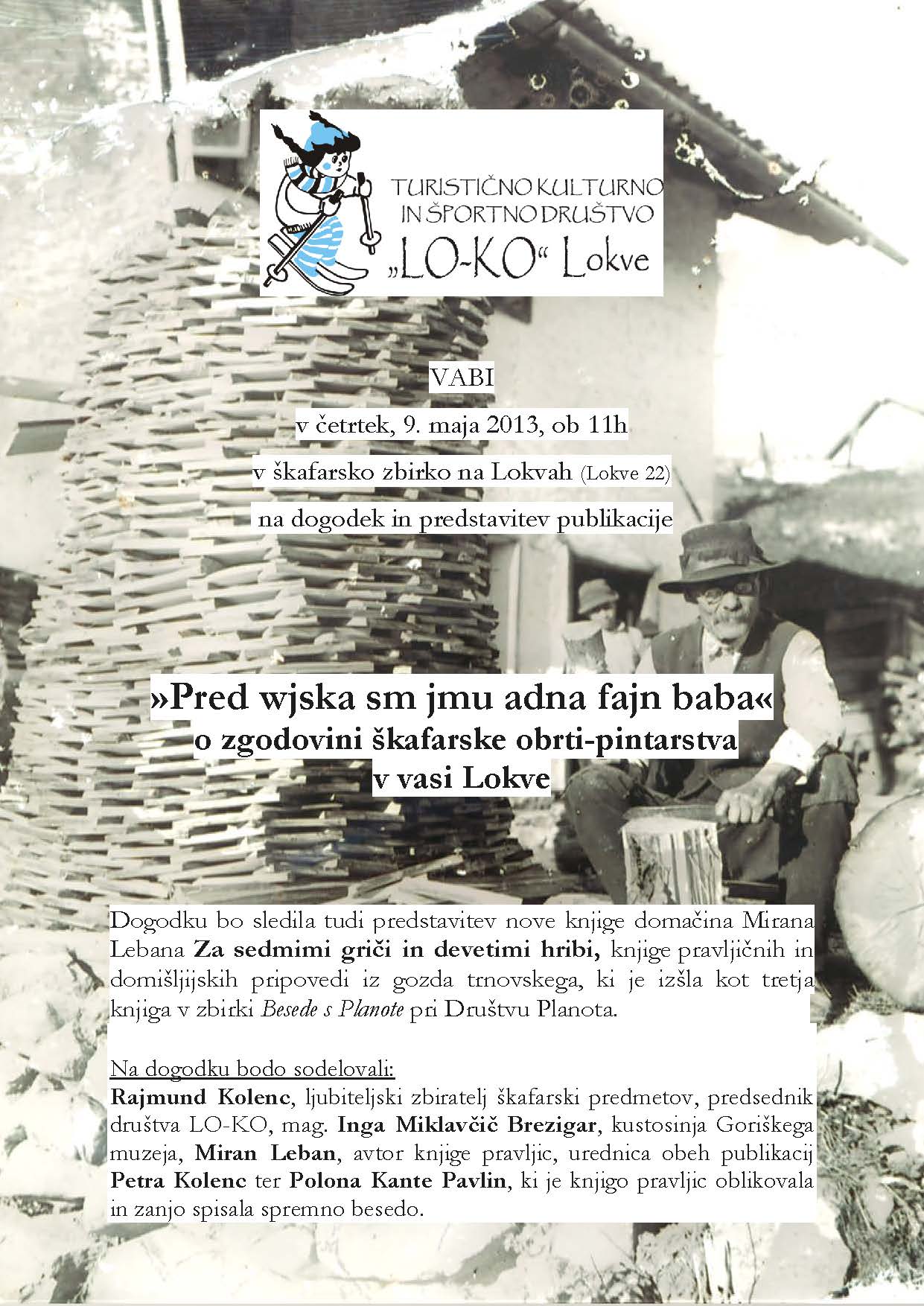 Lokvarsko društvo LO-KO je ob koncu leta 2012 izdalo publikacijo z naslovom "Pred wjska sm jmu adna fajn baba", ki pripoveduje zgodbo o razvoju škafarske obrti-pintarstva v vasi Lokve. Publikacija, ki jo je oblikoval Miroslav Bremec Šuligoj, želi opozoriti na preteklo obrt, ki se je v vasi razvijala skoraj pri vsaki hiši. O tem v uvodnem tekstu razmišlja tudi Rajmund Kolenc, ki je prav na osnovi zbiranja škafarskega orodja ustanovil društvo LO-KO, kjer je v okviru društvene dejavnosti širši javnosti na vpogled mala zbirka škafarskega orodja in predmetov, ki so popisani tudi v spremljajočem katalogu. Na pomen zbiranja etnoloških predmetov je v pričujoči publikaciji opozorila etnologinja Goriškega muzeja mag. Inga Milavčič Brezigar, ki nudi strokovno podporo društvu. Tekst domačina Vladimirja Lebana hudomušno "obrazloži" naslov publikacije, zgodovinsko študijo o razvoju obrti je prispevala Petra Kolenc, publikacija pa opozarja tudi na zadnjega lokvarskega škafarja, ki se je z obrtjo še ukvarjal ter izdeloval pintarske izdelke bolj iz veselja in za okras.